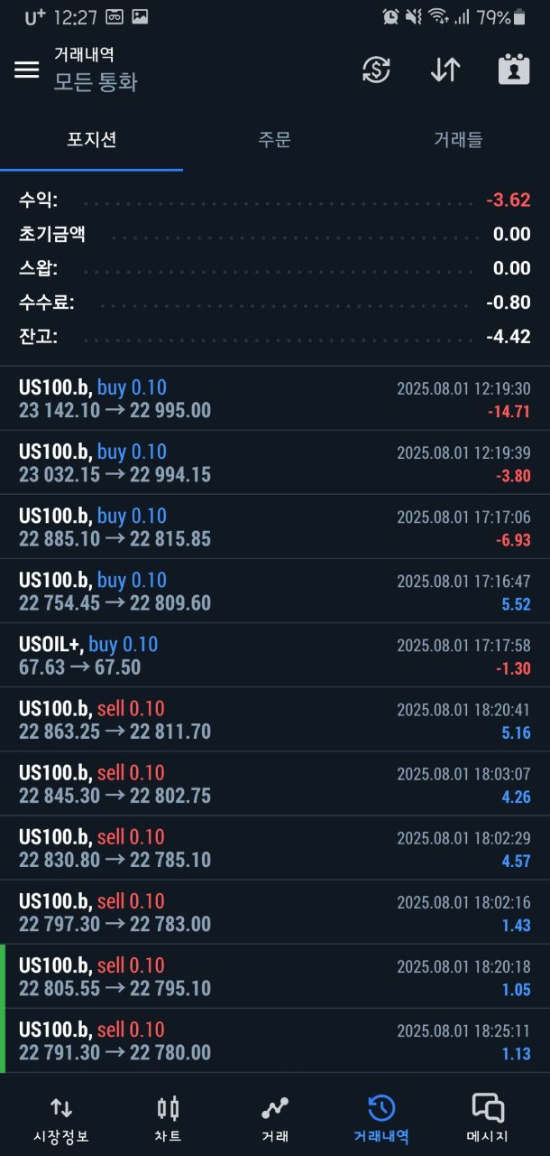 지표발표도 있었지만 평정심을 잃고 버티다가 결국 약손실로 마감함